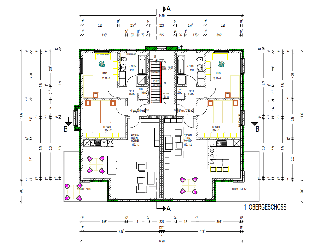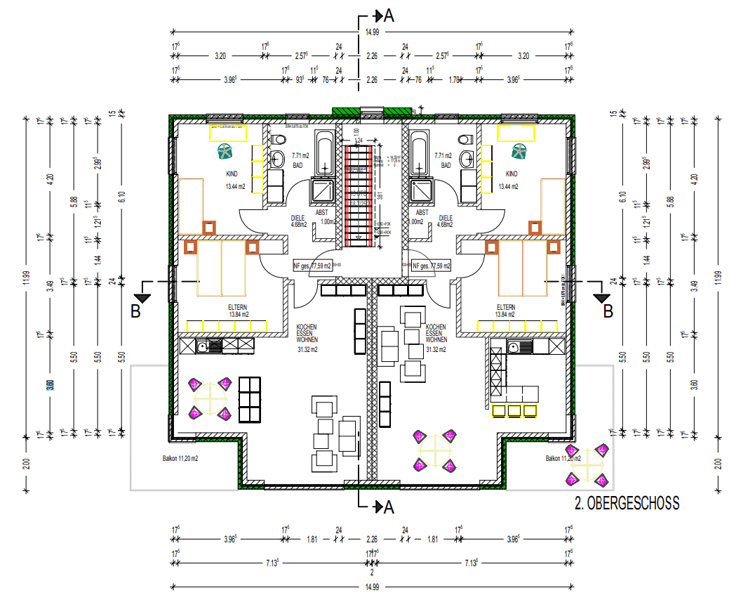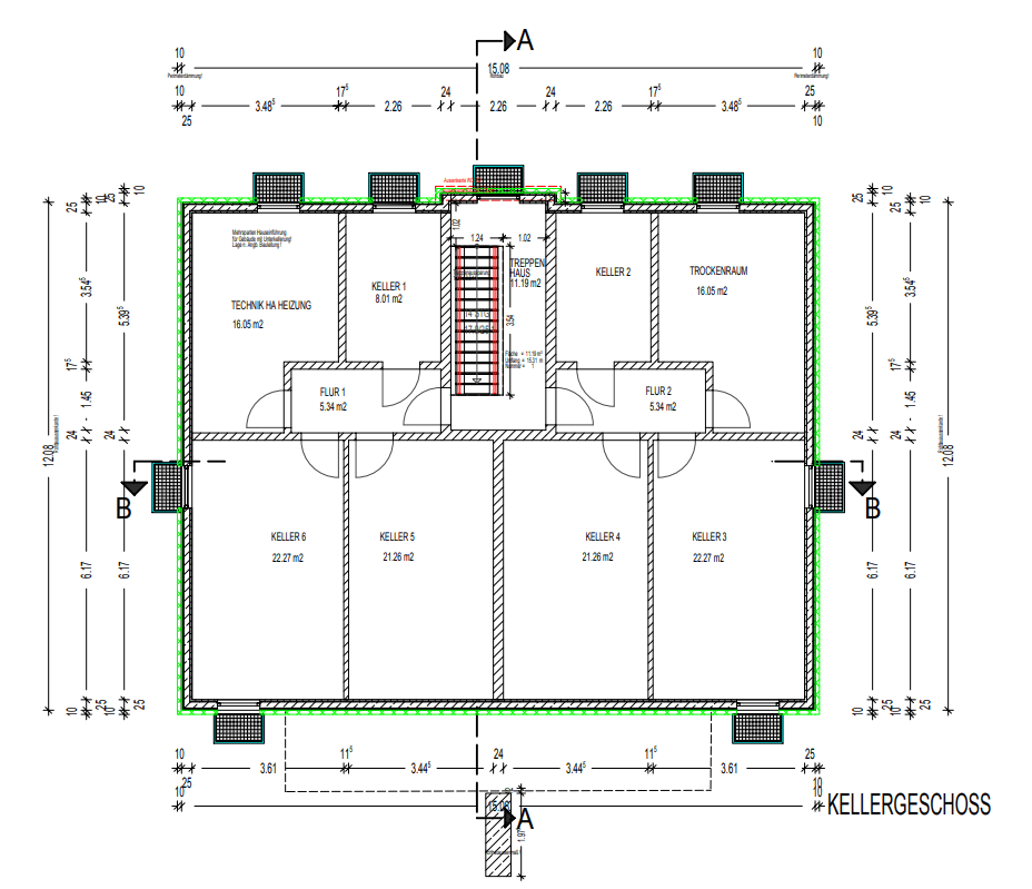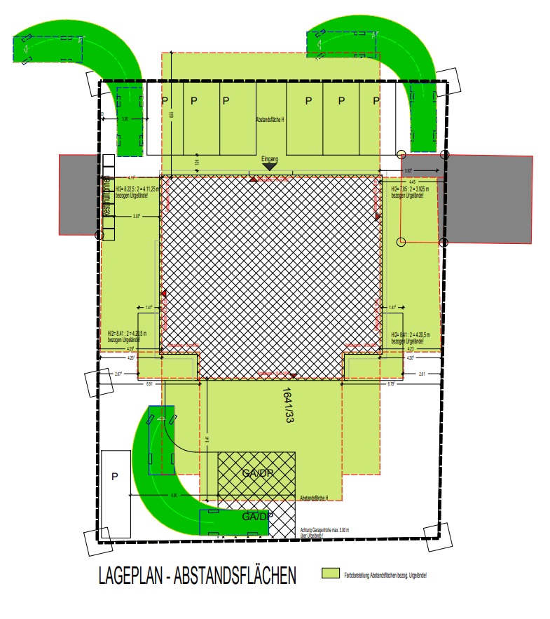 Das gesamte Bauvorhaben umfasst das Mehrfamilienhaus und die Errichtung von 5 Garagen und 7 Stellplätzen.