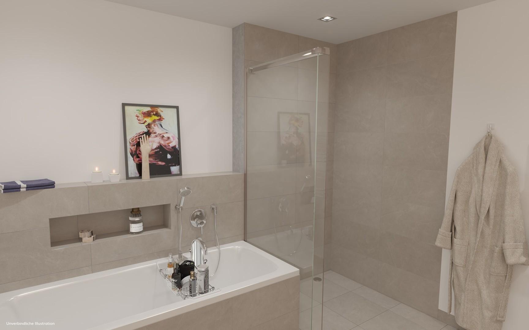 Diese beiden Neubau Sechsfamilienhäuser werden Sie begeistern, sie werden nach dem neuesten Standard der EnEv 2016 als KfW-Effizienzhaus 55 erbaut. Die Architektur bietet lichtdurchflutete Räume, modernste Grundrisse und eine ansprechende Ausstattung. Von einem freundlichen und einladenden Treppenhaus mit Aufzug gelangen Sie in Ihre neue Wohnungen. Die Wohnungen selbst überzeugen mit einem großem Wohn-Esszimmer und offener Küche. Die bodentiefen Fenster bieten Ihnen Zugang auf die Terrassen und Balkon. Das Bad lässt mit der bodenebener Dusche, einer Badewanne und einem Handtuchhheizkörper keinerlei Wünsche offen. Ein Abstellraum mit Waschmaschinen- und Trockneranschluss runden den Komfort der Wohnungen ab.